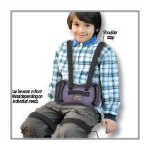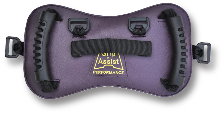 The GLAD Belt Performance model is another innovative option for children and others with a smaller overall Body Mass Index (BMI). Two vertical handles placed left and right of center allow for a quick, sturdy grip. A combination of D-Rings and Velcro closures strategically placed along the belt’s front and back can be arranged in various configurations to suit the individual Hippotherapy patient. This system provides enhanced support options addressing both upper and lower body needs. Engaging abdominal and back muscles individually or simultaneously, the Performance’s utility in Hippotherapy treatment enhances the wearer’s bilateral feedback from increased uniform alignment. The Performance belt proves especially ideal for preparation for equine movement, in addition to reinforcing optimal functions and goals in various Hippotherapy treatments. It is equipped with leg support harness and shoulder strap to support correct alignment.