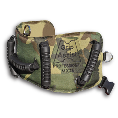 Of our 26 million war veterans, many have sustained life-altering injuries in the service of protecting the U.S.A. (where all GLAD Belt products are proudly manufactured, fulfilling all “Made in the U.S.A.” label requirements). As a result, a significant number of combat veterans face increased mobility challenges and need for assistance. That’s why GLAD Belt offers the military styled MX26 option, outfitted in camouflage colors in honor of those who have served in the armed forces. Five (5) grip handles – four (4) vertical and one (1) horizontal - offer increased support and security a wide variety of types and sizing needing additional aid in movement. Supplementing the handles are straps and harnesses for upper and lower body support during ambulatory movement or transfers. VA hospitals, treatment and rehabilitation centers; general hospital settings; nursing homes; the battlefield and other dangerous situations in the theater of war; "Wounded Warrior" programs; and global urban combat – these are the areas and setting where the GLAD Belt MX26 finds greatest utility, in addition to home and family care for the brave men and women who have defended their country.